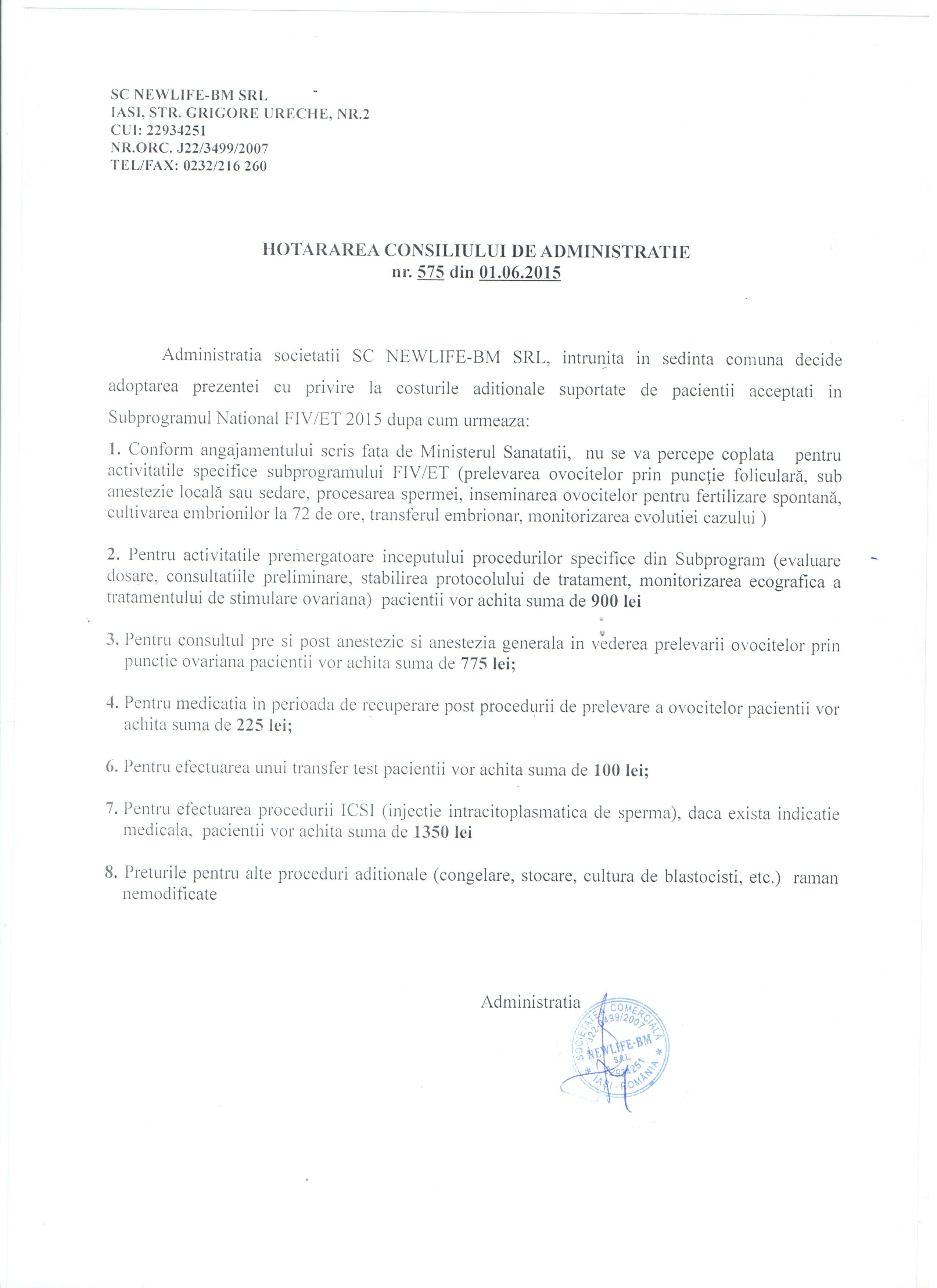 Situatia dosarelor (depuse, aprobate, neaprobate, in asteptare), numar de proceduri FIV/ET, numar de cazuri monitorizate pana la 6 saptamani, numar de teste BHCG pozitive